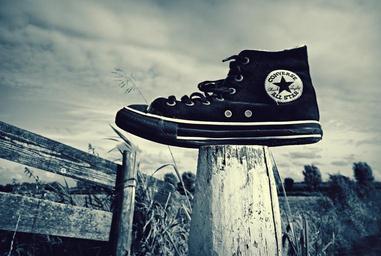 Keywords: shoe sneaker footwear female foot design fashion sport shoe post fence meadow