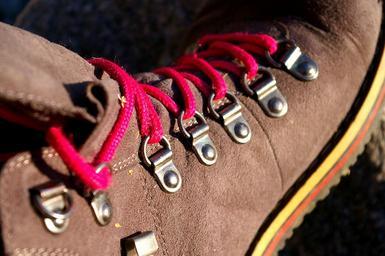 Keywords: shoe trekking eyelets sole shoelace hiking shoes shoe lace shoelaces bind tie shoes bicycle tour pink knot hiking rest break wanderer hike sit rest pause resting place trail relax click