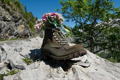 Keywords: shoe tricouni trophy mountain market flowers hiking high mountain summit mountain shoes path