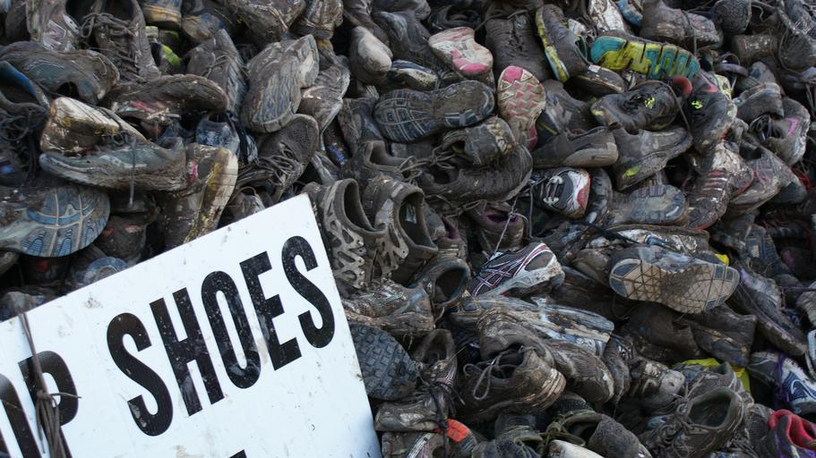 Keywords: shoes mud dirty old worn sneakers trash