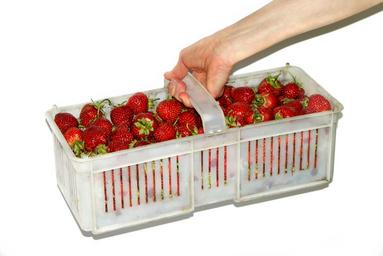Keywords: shopping cart strawberries strawberry eating food a single piece of fruit the hand hand woman the background white stick