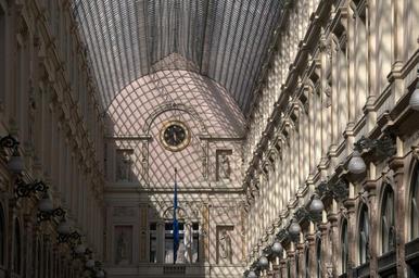 Keywords: shopping centre facets window sky light shadow structure brussels glass roof
