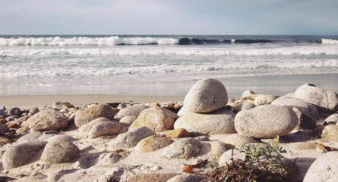 Keywords: shore rocks pebbles stones round sea ocean coast sand beach nature water landscape coastline