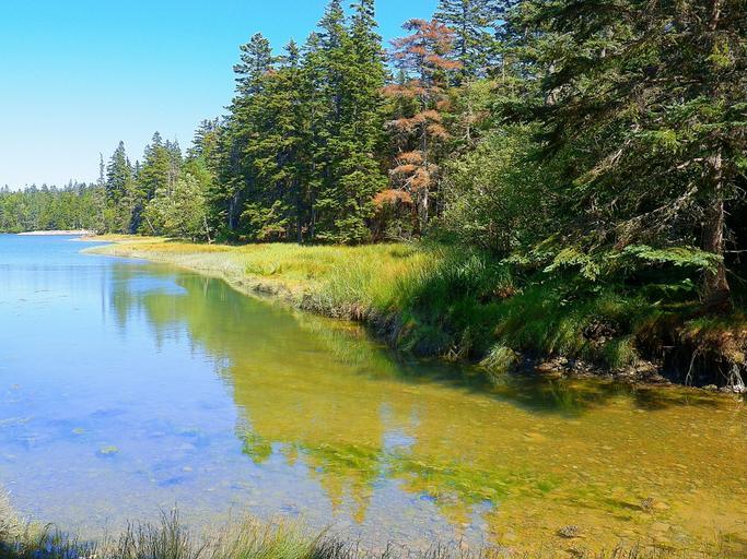 Keywords: shore shoreline coast coastline bay harbor sea ocean ship harbor acadia national park maine fishing tree tree's hiking walking