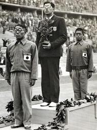 | Keywords: Shozo Makino, Jack Medica, Shunpei Uto 1936 cr.jpg Bronze medalist Shuzo Makino of Japan gold medalist Jack Medica of the United States silver medalist Shumpei Uto pose on the podium during the medal ceremony for Swimming Men's 400m Freestyle during the Berlin Olympic at Swimming Stadium on August 15 1936 in Berlin Germany http //www gettyimages co uk/detail/news-photo/bronze-medalist-shuzo-makino-of-japan-gold-medalist-jack-news-photo/462750160 1936-08-15 Unknown Asahi Shinbun PD-Japan-oldphoto Shozo Makino swimmer Jack Medica Shunpei Uto |