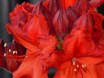 Keywords: shrub azalea nature spring bush garden blooming flower bloom rhododendron flora plant blossom green vibrant petal ornamental gardening bright red color botany outdoors leaf growth season botanical orange buds budded landscape colorful stem delicate