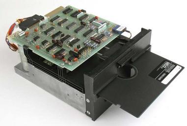 | Keywords: Shugart SA 400 Minifloppy With Disk.jpg Shugart SA-400 Minifloppy was the first 5 25 inch floppy disk drive and each diskette would hold 89 600 bytes of data It was introduced by Shugart Associates of Sunnyvale California on August 27 1976 and a single drive cost 390 The 4-pin power connector and 34-pin signal interface became the industry standard for several generations of disk drives The 5 75 inch wide form factor is still a standard size for computer peripherals Width 5 75 in 146 1 mm Height 3 25 in 82 6 mm Depth 8 0 in 203 2 mm Weight 3 lbs 1 36 KG Power 12V 1 1A 5V 0 5A Photo by Michael Holley November 2006 Taken with a Canon PowerShot A630 using tungsten lighting Edited with Adobe Photoshop Elements 3 0 Own 2006-11-29 Swtpc6800 Michael Holley <gallery> File Shugart SA 400 Minifloppy Drive jpg File Shugart SA 400 Minifloppy Front jpg File Shugart SA 400 Minifloppy Rear jpg File Shugart SA 400 Minifloppy Top jpg File Shugart SA 400 Minifloppy Bottom jpg File Shugart Minifloppy Ad Sept 1977 jpg File Shugart SA 104 Minidiskette jpg File Dysan Verbatim 5 25 disks 1978 jpg File Verbatim 5 25 minidisk tracks 1978 jpg </gallery> Shugart Minifloppy Photographs by User Swtpc6800 |