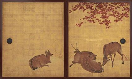 | Keywords: Shunkaku Shūroku-zu Byōbu(motofusuma)by Mori Tetsuzan 03.jpg ja 春鶴秋鹿図屏風(もと襖) 二曲二双 秋鹿図左部 164 7cm×270 6cm en Deer and Maples Cranes and Pine Saplings originally sliding screens the left part of Deer and Maples Two pairs of two-panel folding screens 江戸時代後 頃 from the late 18th century to the early 19th century ja 江戸 京博物館展示 ファインバーグ・コレクション en It was exhibited at the Edo-Tokyo Museum Robert Feinberg Collection 森徹山(安永4年-天 12年) Mori Tetsuzan 1775-1841 other versions <gallery> File Shunkaku Shūroku-zu Byōbu(motofusuma)by Mori Tetsuzan 01 jpg File Shunkaku Shūroku-zu Byōbu(motofusuma)by Mori Tetsuzan 02 jpg File Shunkaku Shūroku-zu Byōbu(motofusuma)by Mori Tetsuzan 03 jpg File Shunkaku Shūroku-zu Byōbu(motofusuma)by Mori Tetsuzan 04 jpg </gallery> Custom license marker 2015 04 14 PD-Japan PD-old-auto-1996 1841 Mori Tetsuzan Uploaded with UploadWizard Paintings of deer |
