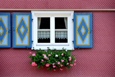 Keywords: shutter farmhouse flower window flower window facade head wooden shutters architecture building colorful wall rustic bavarian allgäu apartment
