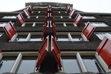 Keywords: shutters red dordrecht house canal cityscape netherlands city architecture houses
