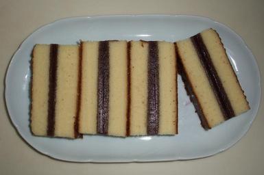 Keywords: Siberia, Japanese cake 01.JPG sponge cake with Yokan シベリア (羊羹をカステラで挟んだお菓子) Own Tak1701d 2009 9 18 Released in Wikimedia Commons under PD by author Yōkan Castella food Sliced cakes Layered cakes Platters with food