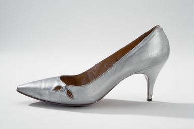| Keywords: Sibyllas sko - Livrustkammaren - 41157.tif Sko av silverfärgat skinn kalv med spetsig tå och söm mitt bak Ovanlädret och bakkappan förenas med en innersöm på högra sidan På tåpartiets vänstra sida finns två bladlika genombrutna utskärningar Mellan dessa är fäst ett strassmycke i form av tre infattade slipade glasbitar Klacken är insvängd hög och smal samt har en brun stiftslapp fäst med en spik i vitmetall <br/><br/>Foder och innersula av ljusbrunt skinn kalv På innersulans hälparti finns en oval guldstämpel med text inuti Bally // NORWICH samt under made in England På innersulans hålfot finns en guldstämpel MADE SPECIALLY FOR // A/B nordiska Kompaniet // STOCKHOLM På skons högra innersida finns stämplat X54505/1 / oläsligt / C ENG <br/><br/>Sulan är gjord av brunt läder med ett ristat rutmönster under tåpartiet På sulan finns en stämpel under tåpartiet med oläslig text i en oval Under hålfoten på sulan finns en stämpel i form av en liggande halvcirkel med text A // IMPORT // 5½ // C original caption Sibyllas sko LRK 12114 <br/> Nyckelord Pumps Silver Skor ger mer Föremålsbild 1959 glass d5 - dräkt - knappar och spännen material glas - leather Färg ljusbrun d1 - dräkt - yttermaterial material läder - hide Färg ljusbrun d2 - dräkt - foder material skinn size mm 254 size mm 80 sula size mm 68 klack size mm 7 klack g 145 LRK Sibylla hertiginna av Västerbotten Skor ger mer - makt flärd magi 2007 place of origin original filename lm_dig2309_12114 48700 inventory number LRK 12114 41157 CC-BY-SA Göran Schmidt <gallery caption Different images of same object > File Sibyllas sko - Livrustkammaren - 24035 tif </gallery> Göran Schmidt Silver shoes Pumps shoes Single high-heeled shoe Media contributed by LSH unmatched material Media contributed by LSH dim-with multiple size templates Media contributed by LSH unmatched creator Media contributed by LSH unmatched keyword Color images from Livrustkammaren Media contributed by LSH 2013-10 |