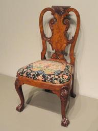 | Keywords: Side Chair, c. 1740, firm of Giles Grendey, England, burr walnut and walnut veneers - Art Institute of Chicago - DSC09757.JPG en Giles Grendey British 1693-1780 George I walnut side chairs with a compass seat raised on splayed cabriole front legs carved with a shell on each knee and with ball-and-claw feet and raked tapered back legs veneered with fine burr walnut on the back and the seat rails c 1740 Seat upholstered in needlework Exhibit in the Art Institute of Chicago Chicago Illinois USA This artwork is in the public domain because the artist died more than 70 years ago Photography was permitted in the museum without restriction Daderot 2012-10-10 14 44 08 Daderot cc0 cc0 Wooden chairs Walnut wood Wood veneer Upholstered chairs Wooden Side chairs Cabriole legs Claw-and-ball feet Chairs in the United States 18th-century furniture 1740 circa Queen Anne furniture Furniture in the Art Institute of Chicago 1740s Giles Grendey |