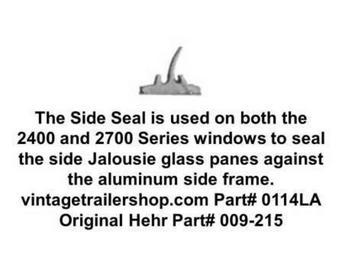 Keywords: This Side Seal (also known as a T seal) provides a seal between the glass louvers and the side of the aluminum frame. vintagetrailershop.com Part# 0114LA Original Hehr Part# 009-215