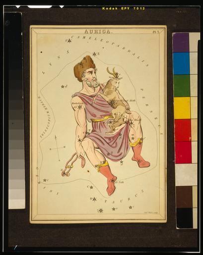 | Keywords: Sidney Hall - Urania's Mirror - Auriga - original.tif File Sidney Hall - Urania's Mirror - Auriga jpg Auriga plate 7 in Urania's Mirror a set of celestial cards accompanied by A familiar treatise on astronomy by Jehoshaphat Aspin London Astronomical chart 1 print on layered paper board etching hand-colored LOC-image cph 3g10076 1825 Creator Sidney Hall File Sidney Hall - Urania's Mirror - Auriga jpg - Restoration JPEG File Sidney Hall - Urania's Mirror - Auriga png - Restoration PNG File Sidney Hall - Urania's Mirror - Auriga - original tif - Original TIFF The restorationist Adam Cuerden requests attribution PD-old-100 Auriga Adam Cuerden's restorations Urania's Mirror |