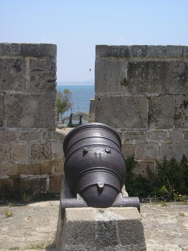 Keywords: Sidsmith.jpg 19th century mortar in the walls of Akko Acre Israel מרגמה מהמאה ה-19 בחומות עכו ישרא Own 2005-05-25 Almog he Hebrew Wikipedia א מוג Cannons in Old Akko walls Gunpowder mortars