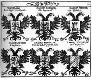| Keywords: Siebmacher 1701-1705 C002.jpg Siebmachers Wappenbuch Tafeln der 9 Ausgabe 1701 und der 10 Ausgabe 1705 nach dem Faksimile von 1975 Tafel aus Teil 3 http //www wappenbuch com/ between 1701 1705 Rudolf Johann Helmer Paul Fürst und Mitarbeiter PD-old-100 Siebmachers Wappenbuch 1701/1705 Teil 3 Siebmacher - Kaiser Coats of arms of Henry VII Holy Roman Emperor Coats of arms of Adolf of Nassau Coats of arms of Louis IV Holy Roman Emperor Coats of arms of Alfonso X of Castile Coats of arms of Richard of Cornwall Lion of Holland in heraldry Coats of arms of William II of Holland Attributed coats and shields of arms of Holy Roman Emperors |