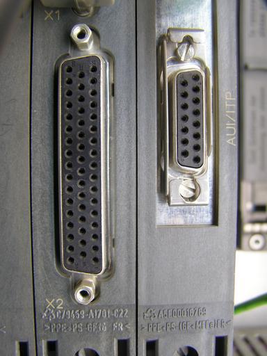| Keywords: Siemens S7-400 interfaces 2.JPG  en Outer interfaces of Siemens S7-400 ПЛК SIMATIC S7-400 Слева -  азъём  асположенный на инте фейсном модуле IM 460-0 сп ава - AUI/TP для подключения к Ethernet  асположенный на коммуникационным п оцессо е CP 443-1 own Mixabest Simatic S7 |