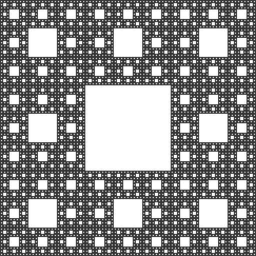 | Keywords: Sierpinski carpet.png en Sierpinski carpet rendered at 3 7 by 3 7 pixels high resolution in monochrome own work by original uploader 2010-01-25 Josh Greig Joshi1983 en Original upload log en wikipedia ftcg page en wikipedia Sierpinski_carpet png wikitable - 16 34 24 January 2010 2 187 × 2 187 14 081 bytes Joshi1983 w en <nowiki> Sierpinski carpet rendered at 3 7 by 3 7 pixels high resolution in monochrome I Josh created this work entirely by myself 2010-01-25 Josh Greig other_versions </nowiki> Files transferred from Wikipedia by Josve05a Sierpinski carpets |