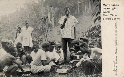 | Keywords: SierraLeoneP004.tif en Many hands make light work Meal Time Sierra Leone 2014-02-21 11 18 15 Collection Hofstra African Studies Centre Leiden The Netherlands Lisk-Carew Brothers Freetown Sierra Leone Copyright Sierra Leone photographs 50 years after publication See http //www sierra-leone org/Laws/2011-08 pdf section 25 Edoderoo PD-old attribution Lisk-Carew Brothers Coll Hofstra -ASC Leiden Wikimedia Uploaded with UploadWizard Sierra Leone in the 1910s Lisk-Carew Brothers Black and white photographs of Sierra Leone Collections of the African Studies Centre Leiden People eating Images from the African Studies Centre Leiden |