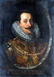 | Keywords: Sigismund III.jpg Artist Portrait of King Sigismund III Vasa copy Portret króla Zygmunta III Wazy kopia ca 1610 oil canvas cm 84 62 Institution Wilanów Palace Museum accession number object history credit line Portrait in a rich chiselled partially gilt and polychromed blue armor in the type of mezza armatura half armor This parade armor was probably made in Milan in the second half of the 16th century 19th-century copy of not preserved portrait painting http //www wilanow-palac pl/image php/15621/rex_armatus_zygmunt_iii_waza_zbroja jpg www wilanow-palac pl Copyright expired PD-old-100 Portraits of Sigismund III of Poland Armours from the Polish Vasa Collection 17th-century portraits wearing armour 1610s paintings in Poland 17th-century oil on canvas paintings in Poland Replicas of paintings Portrait paintings of bearded men 1610s portrait paintings |
