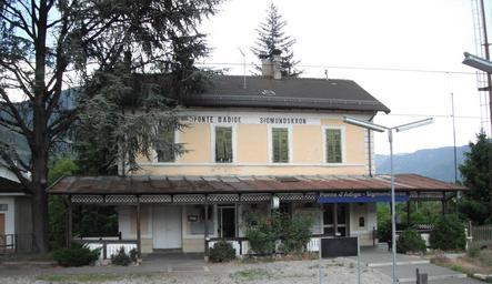 | Keywords: Sigmundskron Ponte d'Adige Railway Station.jpg 46 485623 11 297513 it Stazione ferroviaria di Ponte d'Adige BZ Alto Adige Italia Ferrovia Bolzano-Merano de Bahnhof Sigmundskron Südtirol Italien Bahnstrecke Bozen “Meran en Railway station Ponte d'Adige-Sigmundskron South Tyrol Italy Railway Bolzano-Merano Denkmalgeschütztes Objekt Südtirol 50397 2011-04-30 own Emilio2005 cc-zero Uploaded with UploadWizard Sigmundskron train station | ||||