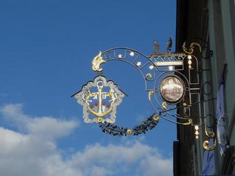 Keywords: sign establishment figures sky clouds outside building business pub restaurant steinwiesen germany