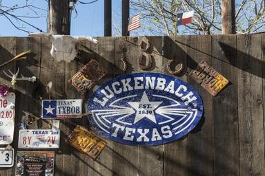 | Keywords: Sign for Luckenbach, Texas, a dot of a place in Gillespie County, Texas LCCN2014633206.tif 1 photograph digital tiff file color Notes Title date and keywords based on information provided by the photographer ; Credit line The Lyda Hill Texas Collection of Photographs in Carol M Highsmith's America Project Library of Congress Prints and Photographs Division ; Forms part of Lyda Hill Texas Collection of Photographs in Carol M Highsmith's America Project in the Carol M Highsmith Archive ; Gift; The Lyda Hill Foundation; 2014; DLC/PP-2014 054 ; Luckenbach made famous by the country song about Waylon Jennings Willie Nelson and the Boys Its oldest building is a combination general store and saloon reputedly opened in 1849 1886 is more likely based on land improvement records of the Texas State Library and Archives Commission by Minna Engel whose father was an itinerant minister from Germany The community first named Grape Creek was later named after Minna's husband Carl Albert Luckenbach who was then her fiance 2014 Creator Carol M Highsmith Library of Congress Catalog http //lccn loc gov/2014633206 Image download https //cdn loc gov/master/pnp/highsm/29000/29006a tif Original url http //hdl loc gov/loc pnp/highsm 29006 No known restrictions on publication LOC-image highsm 29006 PD-Highsmith Images uploaded by Fæ The Lyda Hill Texas Collection of Photographs in Carol M Highsmith's America Project Library of Congress Prints and Photographs Division Lyda Hill Texas Collection of Photographs in Carol M Highsmith's America Project in the Carol M Highsmith Archive Photographs by Carol M Highsmith |