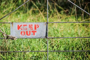 Keywords: sign forbidden rules metal warning forbid safety prohibited restrict stop ban weathered gate lock padlock