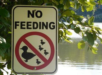 Keywords: sign warning warning sign symbol safety attention icon black alert risk white notice information red message ducks swan waterfowl design communication round lake water