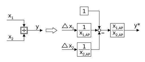 Keywords: Signalflussplan division.svg de de Linearisierung Own Mik81 Inkscape Control theory block diagrams