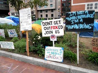 Keywords: Signs at Occupy Boston 2.jpeg en Protest signs outside of Occupy Boston 2011-10-23 own GorillaWarfare 42 35283 -71 05557 cc-zero Uploaded with UploadWizard Occupy Boston Banners and signs at demonstrations and protests