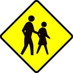Keywords: signs pedestrian crossing people road sign caution alert walking yellow black bright