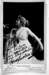 | Keywords: edvard grieg edvardgrieg vintage black and white blackandwhite historic norway sigrid arnoldson sigridarnoldson woman profile portrait autograph new york city newyorkcity opera monochrome blackandwhite photo border black and white Artist: Falk [?] Date/place: About 1890, New York Subject: Sigrid Arnoldson Medium: photographic positive, B&W Notes: Swedish singer. Written on the photo: "[?] Ed. Grieg med vänskap (uleselig tekst) Sigrid Arnoldson ([?] Ed. Grieg with friendship - unreadable text - Sigrid Arnoldson) Persistent URL: Original belongs to the Edvard Grieg Archives at Bergen Public Library Original reference: EGM0298 Artist: Falk [?] Date/place: About 1890, New York Subject: Sigrid Arnoldson Medium: photographic positive, B&W Notes: Swedish singer. Written on the photo: "[?] Ed. Grieg med vänskap (uleselig tekst) Sigrid Arnoldson ([?] Ed. Grieg with friendship - unreadable text - Sigrid Arnoldson) Persistent URL: Original belongs to the Edvard Grieg Archives at Bergen Public Library Original reference: EGM0298 |