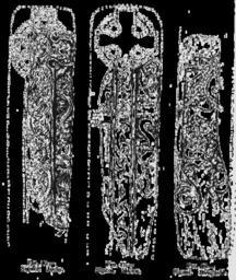 | Keywords: Sigurd on Manx crosses.gif en Sigurd on three crosses from the Isle of Man Fig 46 The first of these from Jurby shows on the space remaining at one side the dragon Fafni writhing in his death agony and Sigurd piercing him with a sword The Sagas relate that Sigurd was advised by Odin to dig pits and to conceal himself in one in order to strike the dragon as he passed over it Owing to the cramped space at his command the artist has ingeniously represented the pit by what looks like a hollow mound with an opening at the top Below is another figure of Sigurd in the act of roasting the heart of the dragon and having scalded his fingers with the boiling blood he cools them in his mouth-by which means he came to under- stand the language of birds Below is the steed Grani and a peculiar conventional figure of a tree at one side of which is one of the talking birds through whom Sigurd learned of the intended treachery of the dwarf Regin who meant to devour the heart himself and so become the wisest and most powerful of beings and then having slain Sigurd to carry off the treasure Fig 47 The Malew slab shows on the brolien space at one side of the cross the steed and below the remains of two panels unfortunately lost At the other side Sigurd is seen holding the wand upon which the dragon's heart is roasting over a fire represented by three triangular flames while he cools his burnt fingers in his mouth The figure below shows again Sigurd from his pit piercing the dragon as he passes over Both the figure drawing and the geometrical work are of a different type and this is certainly later than the Jurby stone and by a different artist Fig 48 The Maughold slab is by yet another hand and of a still later date and is suggested in Manx Crosses to have been a memorial to King Olaf the Red who was slain at Ramsey in 1153 Upon this we see for the first time the beginning of the story which tells how Loki who was the mischief-maker among the high gods found the Otter devouring a salmon on a rock by the Foss or waterfall and stoned him to death When it was discovered that the Otter was the son of Hreidmar King of the Dwarf-kind who assumed that form when he went a-fishing Odin Hoener and Loki notwith- standing their godship had to pay weregild ; for this purpose Loki then captured Andwari and robbed him of his treasure including the celebrated ring which was to bring such a dreadful curse on all its future possessors Further up on the panel is represented the later scene when Sigurd having slain the dragon as well as Regin who was brother to Fafni seized the treasure and set it on the back of Grani to ride away and pass through the ring of flames to Brynhild the Valkyrie http //www isle-of-man com/manxnotebook/fulltext/ma1914/pt4 htm en P M C Kermode 1914 PD-Old Sigurd legend in Nordic art Crosses in the Isle of Man |