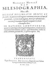 Keywords: Silesiograf1613.jpg pl Strona tytułowa Silesiographia Nikołaja Henela own St Mons 1613 Henel von Hennenfeld Uncategorized 2015 March 25