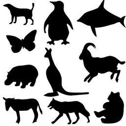 Keywords: silhouette dog penguin fish butterfly kangaroo hippo donkey wolf bear black
