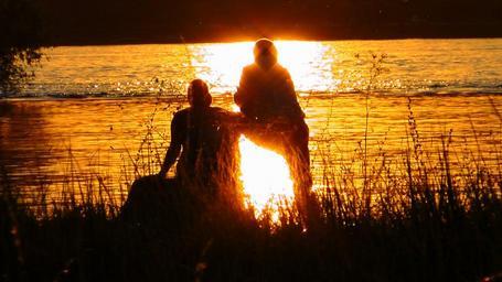 Keywords: silhouette lovers light rays atmosphere abstract reflection water sunbeam setting rest love
