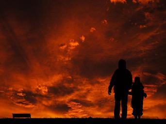 Keywords: silhouette people young person black sky sunset clouds cloud nature chair landscape