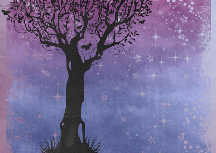 Keywords: silhouette tree butterfly purple sky tree silhouette plant shape flourish forest grow nature ornament outdoors branch creative stylized trunk woods dark lonely moody