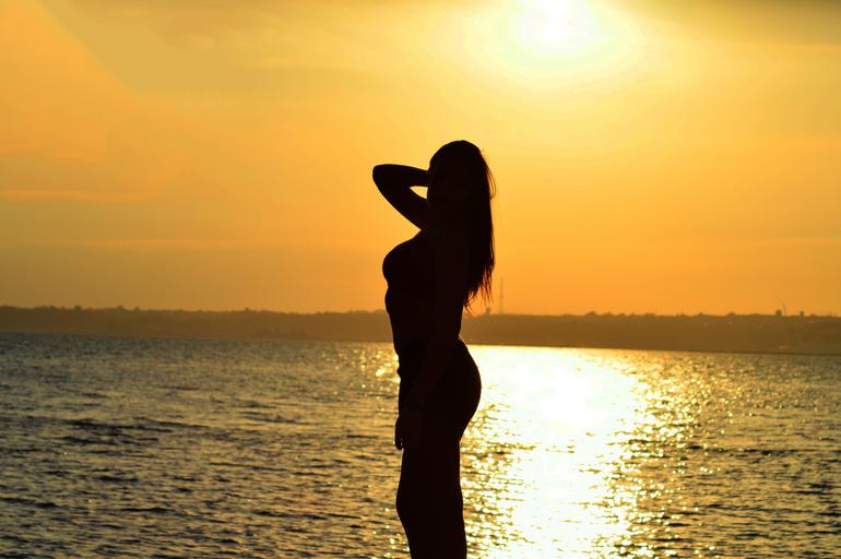 Keywords: silhouette woman girl ocean sun sea water evening sunset on the sea sunset
