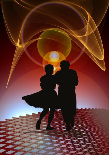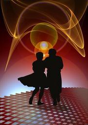 Keywords: silhouettes man woman dance dancers stand art dance couple dance rock dress movement light dance floor parquet joy swing rotation