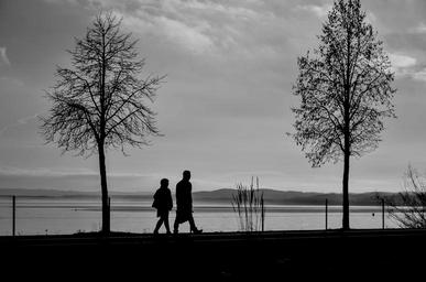 Keywords: silhouettes tree man market walk lake trees
