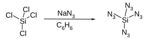 Keywords: Silicon tetraazide synthesis 02.svg en Synthesis of silicon tetraazide de Synthese von Siliziumtetraazid own Steffen 962 2010-11-30 PD-chem Cc-zero Silicon azides