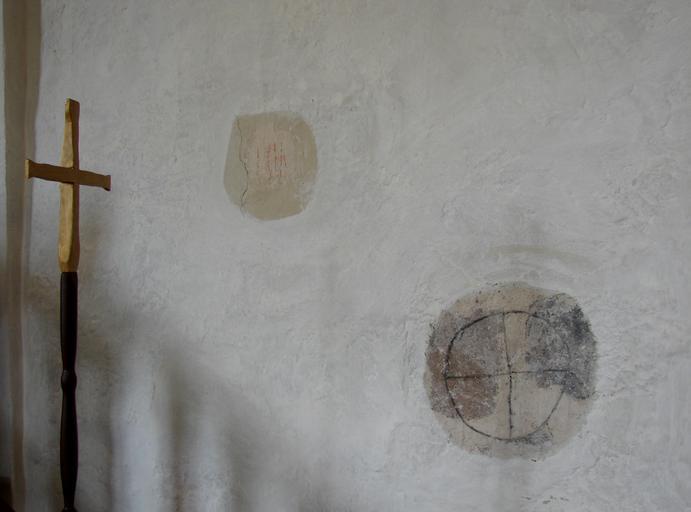 Keywords: Siljan Kirke (fragmenter).JPG Rester af kalkmalerier fra Siljan Kirke Telemark own 2012-08 Orf3us Siljan kirke Frescos in churches in Norway