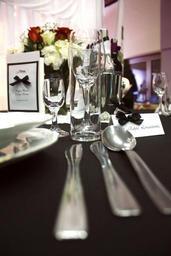 | Keywords: silver cutlery eat cutlery knife fork metal tools spoon tableware serve eating silver wine glasses transparent plates dining table porcelain ceramic decoration bottle the tradition of decorative wedding event beautiful composition the ceremony arrangement rose flower bouquet of flowers flowers roses red roses tablecloth black business card food |