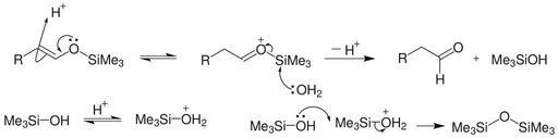 Keywords: SilylEnolEtherHydrolysis.svg en hydrolysis of silyl enol ether own Choij 2009-08-01 Silyl enol ethers