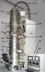 | Keywords: Simens numeri.jpg en Siemens electron microscope 1969 it Microscopio elettronico Siemens 1969 Own Ricce 2008-08-19 LEGENDA 1-cavo dell'alta tensione;2-emissione di elettroni; 3-motori di centraggio del raggio; 4-condensatori; 5-regolazione dei diaframmi; 6-portacampione; 7-obiettivo; 8-proiettori; 9-microscopio ottico stereoscopico; 10-schermo fluorescente; 11-tubi del sistema per produrre il vuoto; 12-spostapreparati; 13-controllo del vuoto ed ingrandimenti; 14-manopole di messa a fuoco English Translation High tension cable Electron emitter Stepper motors for centering the electron beam Condenser Aperture controls Specimen holder Objective lens Projector lens Optical binoculars Fluorescent screen Vacuum pump leads Goniometer- Vacuum and magnification control Focusing control Transmission electron microscope Vacuum tools Siemens |
