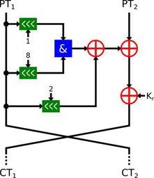 Keywords: Simon block cipher.svg en One round of Simon block cipher 2014-04-18 13 49 35 own Gregor Pintar cc-zero Uploaded with UploadWizard Cryptography Ciphers