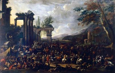 | Keywords: Simon Johannes van Douw - Italianizing Capriccio with Market Scene.jpg Artwork Creator Simon Johannes van Douw century 17 Oil canvas size cm 210 330 Artgate Fondazione Cariplo accession number object history credit line PD-old-100 Simon Johannes van Douw |